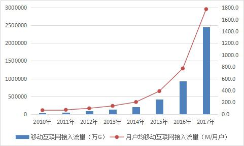 2010-2017年移動互聯(lián)網(wǎng)流量發(fā)展情況比較