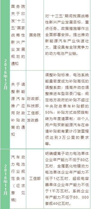 鋰離子動力電池是新能源汽車的核心部件,國家為加快新能源汽車產(chǎn)業(yè)化進程,頒布了一系列相關政策性文件,大力支持我國新能源汽車及動力電池行業(yè)的健康快速發(fā)展。同時,國家制定政策支持儲能技術(shù)發(fā)展以及產(chǎn)業(yè)化。
