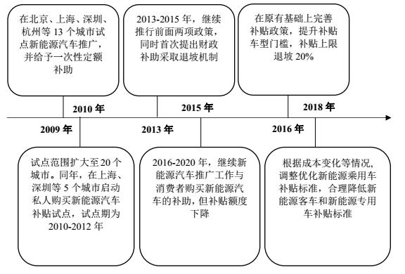2009年國家開始新能源汽車推廣試點,隨著新能源汽車市場發(fā)展,國家對補貼政策也有所調(diào)整。近年來,國家對新能源汽車的補貼政策呈現(xiàn)補貼額度收緊,補貼門檻逐漸提高的趨勢。