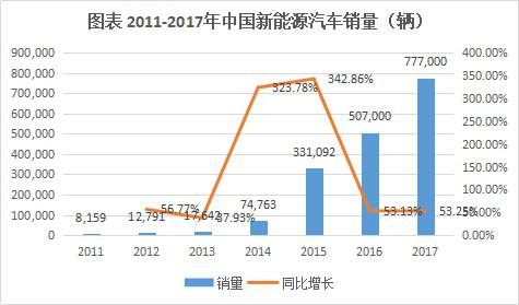 2017年,鋰離子電池主要應用市場增速放緩,全年全球鋰離子電池產(chǎn)業(yè)規(guī)模超過3000億人民幣,增速較2016年下滑4個百分點。在新能源汽車推廣政策繼續(xù)推動下,2017年中國電動汽車產(chǎn)量達到65萬輛,在全球電動汽車市場占比將進一步提升。