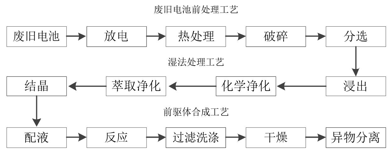 公司應用電池回收技術(shù)生產(chǎn)鋰電池材料,主要產(chǎn)品是三元前驅(qū)體,其生產(chǎn)流程分為廢舊電池前處理工藝、濕法處理工藝以及前驅(qū)體合成工藝三階段,具體過程為:
