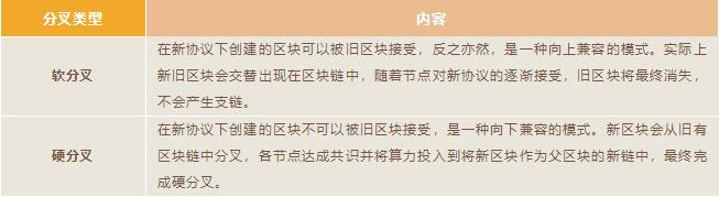 區(qū)塊鏈的共識協(xié)議包括交易結(jié)構(gòu)的協(xié)議和區(qū)塊結(jié)構(gòu)的協(xié)議。如果區(qū)塊鏈系統(tǒng)出現(xiàn)問題需要修復(fù)或者結(jié)構(gòu)上需要升級便會通過分叉的方式實(shí)現(xiàn)。這樣的分叉分為軟分叉和硬分叉。