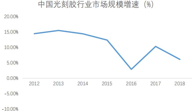 圖表4 中國光刻膠行業(yè)市場規(guī)模增速