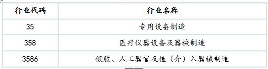 表1:植入醫(yī)療器械行業(yè)代碼表
