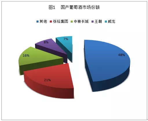 2000年開始,伴隨著新一輪消費(fèi)升級大潮的來臨,葡萄酒行業(yè)進(jìn)入快速發(fā)展期。近年來,隨著消費(fèi)者對葡萄酒的認(rèn)知出現(xiàn)變化,居民的消費(fèi)能力也出現(xiàn)上升,葡萄酒市場出現(xiàn)良好的發(fā)展勢頭,國內(nèi)一批葡萄酒企業(yè)紛紛打響了自己的品牌。目前,在我國的500多家葡萄酒企業(yè)中,已經(jīng)形成了以張?jiān)?、王朝、長城等為龍頭的一線葡萄酒品牌。幾大品牌占據(jù)了國內(nèi)葡萄酒市場的大部分份額,集中度進(jìn)一步增大。其中,張?jiān)?、長城、王朝的葡萄酒產(chǎn)量,占全國葡萄酒總產(chǎn)量的50%左右(圖1)。同時(shí)張?jiān)?、長城和王朝的銷量占50%的市場份額。利潤總額更是占到行業(yè)的67%。王朝、張?jiān)?、長城三家國產(chǎn)品牌通過超市等多渠道的擴(kuò)張,已在國內(nèi)消費(fèi)者心目中占據(jù)重要的位置。