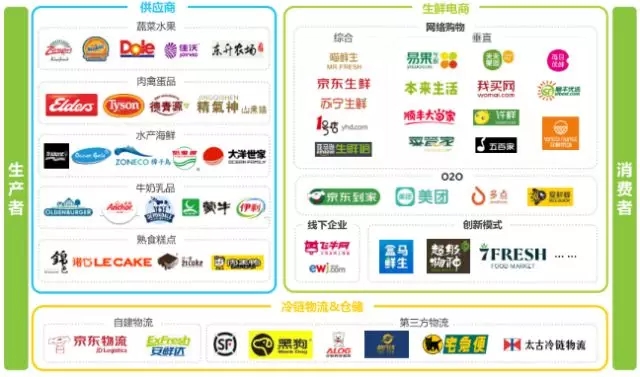 2017年中國生鮮電商產(chǎn)業(yè)鏈圖譜