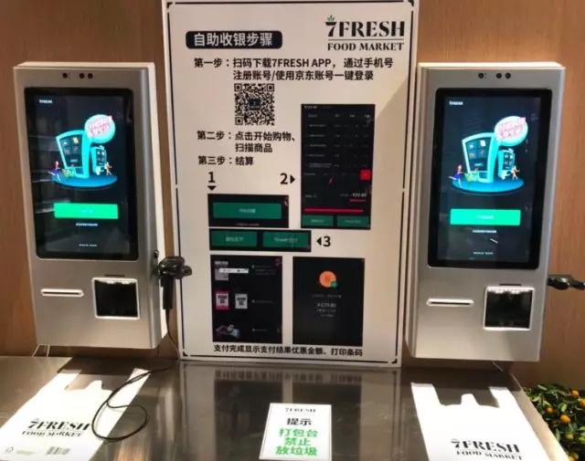 選購?fù)戤?,消費(fèi)者可在7fresh店內(nèi)實現(xiàn)自助結(jié)賬。具體操作如上圖所示,掃碼下載7fresh APP,通過手機(jī)號注冊賬號,點(diǎn)擊開始購物,掃描商品,進(jìn)行結(jié)算。但對于此全用戶手動操作的過程,如果顧客有意遺漏幾件商品的掃描與付費(fèi)呢?對于此問題,京東方面回應(yīng)稱“7fresh 是面向高素質(zhì)消費(fèi)群體的生鮮超市”。