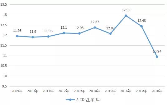 2009-2018年中國新生兒出生率變化