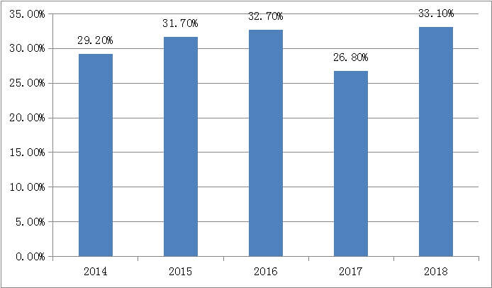 2018中國工業(yè)機(jī)器人領(lǐng)域占比(%)
