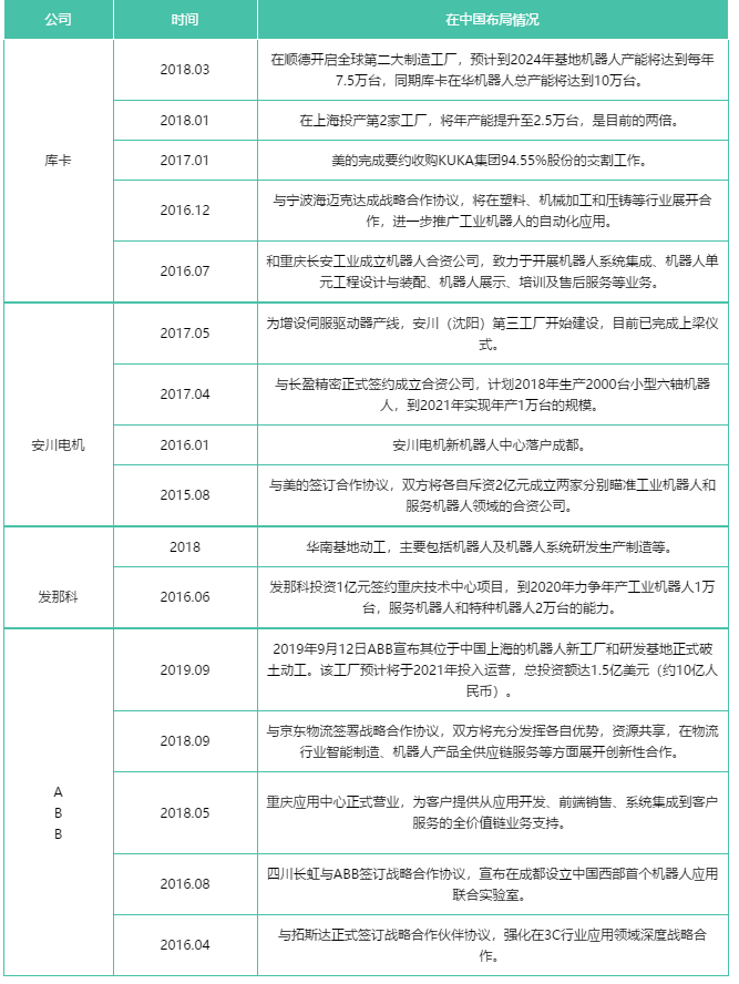 工業(yè)機(jī)器人“四大家族”在中國的布局情況